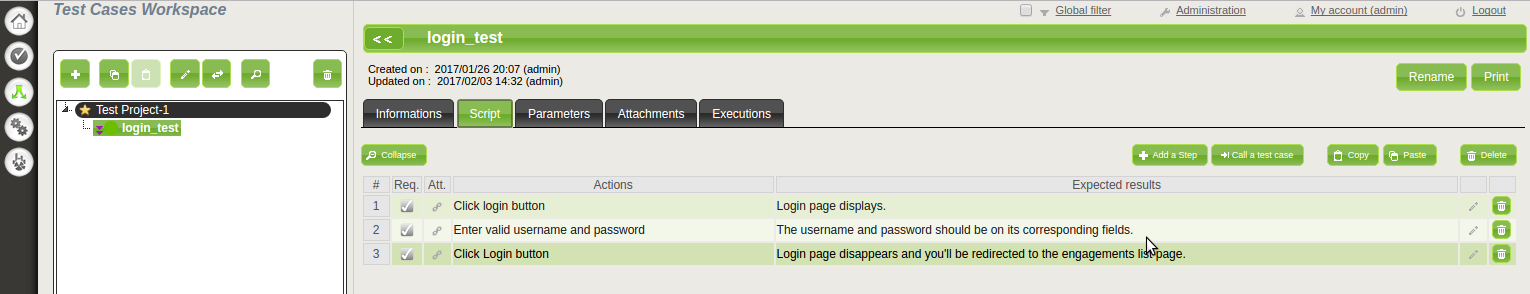 5. You can now add steps in your first test case by clicking Add a Step button ![]()