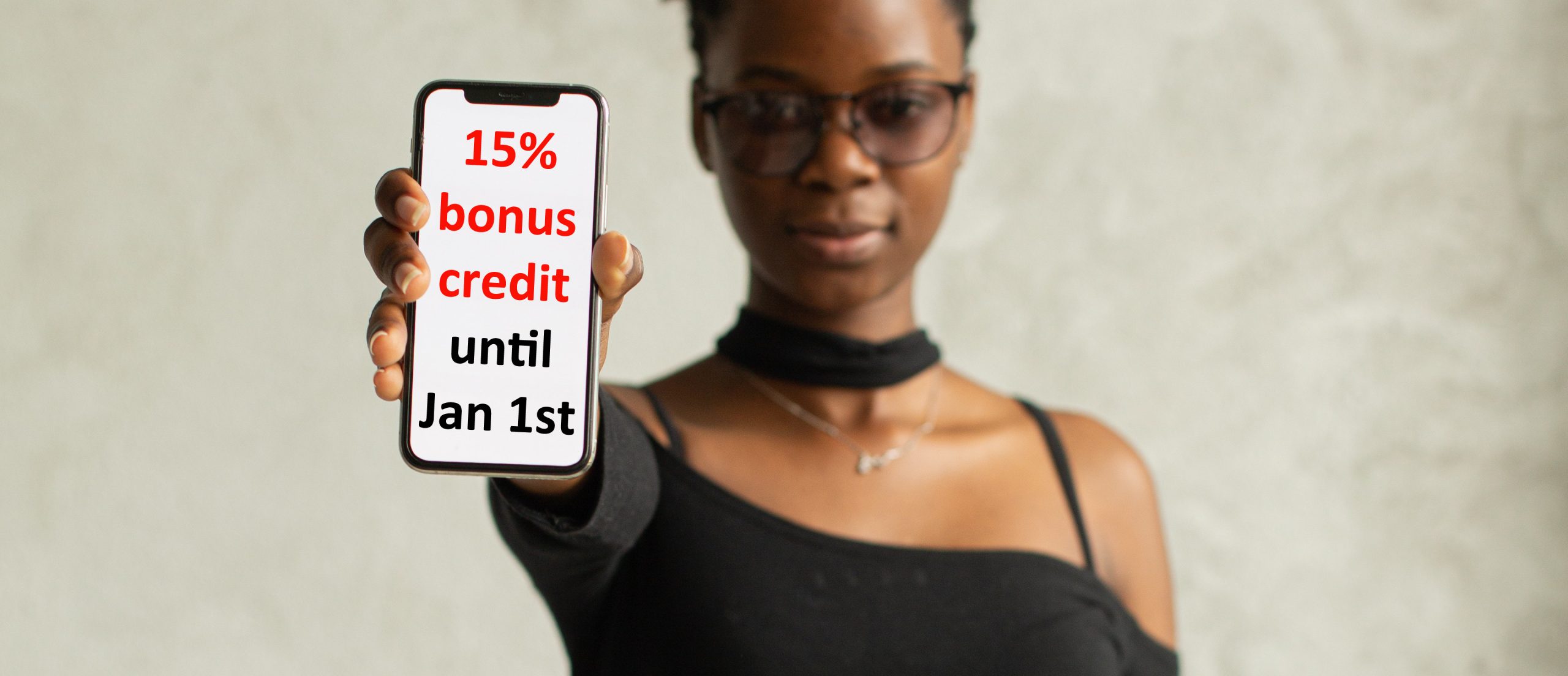 We are ending the year by offering you more savings for your budget. Get 15% bonus credit every time you add credit to your engageSPARK account from December 3 to January 1, 2022. The bonus credit will be added to your account by January 2nd.