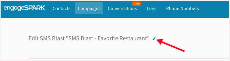 It’s always a good practice to name your campaigns appropriately to easily distinguish one from the other. This is especially useful when you start having multiple campaigns in your engageSPARK account.