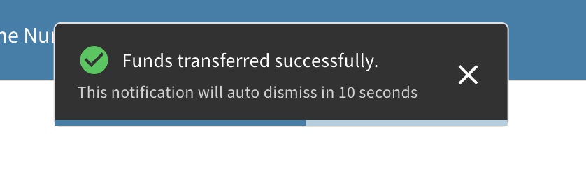- A pop-up notification will show at the top of your screen to let you know the transfer was successful
