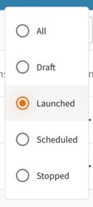 4. Filter by status allows you to filter by Draft, Launched, Scheduled, or Stopped campaigns.
