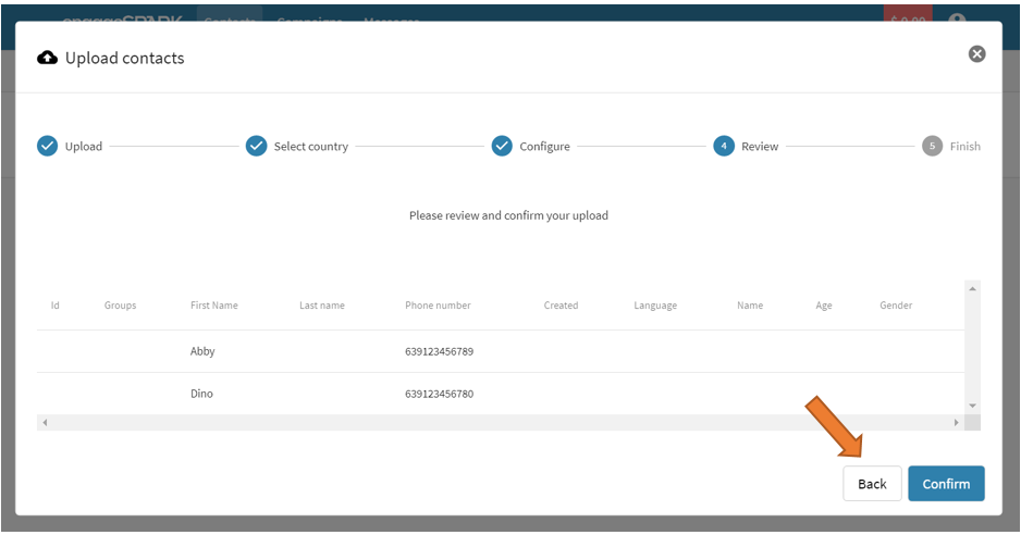 Note: If your database of contacts (in excel) only consists of numbers from a single country, there’s no need to include the country code (e.g., 63). The system will automatically add it for you.