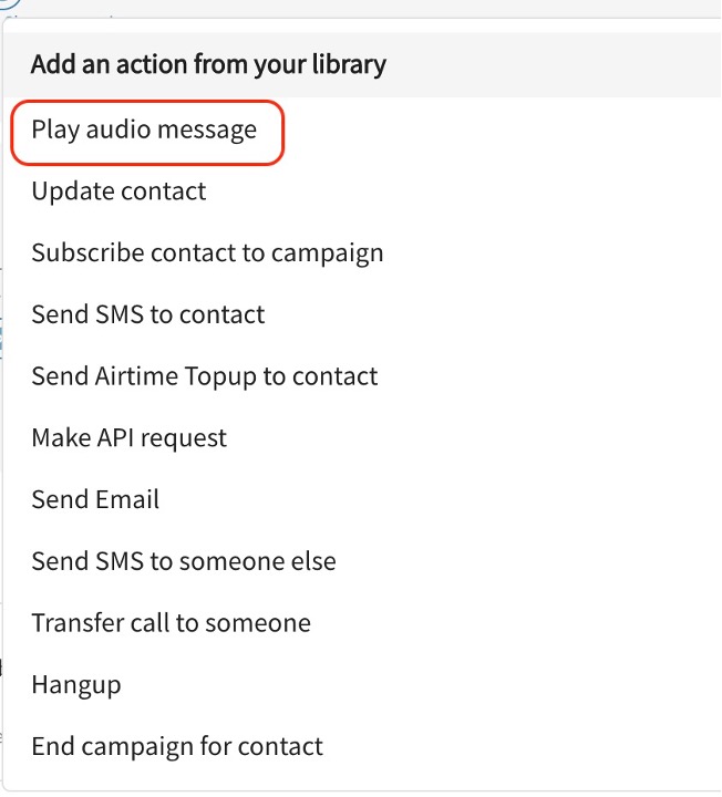 - In your Drip Campaign or Voice IVR Survey answer choices, click the “Choose an action” dropdown menu.